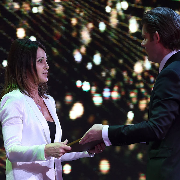 Nadia Comaneci (ROU), winner of five Olympic gold medals at the 1976 and 1980 Games and the first female gymnast to be awarded a perfect 10 in an Olympic Gymnastics event, was among three sporting legends honoured with the title of World Ambassadors of Sport.