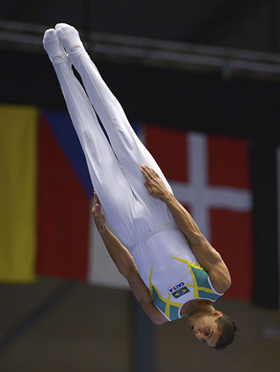While half of the 16 spots for men and women in Olympic Trampoline were distributed at the 2015 Worlds in Denmark in November, 13 male and 13 female gymnasts will compete for the remaining competition berths. Though a total of 16 places are yet unclaimed, one place will be reserved for Brazil as host country (should a Brazilian gymnast not qualify in his or her own right), while another will go to a gymnast from Africa or Oceania, two continents as yet unrepresented among the Rio Trampoline roster.